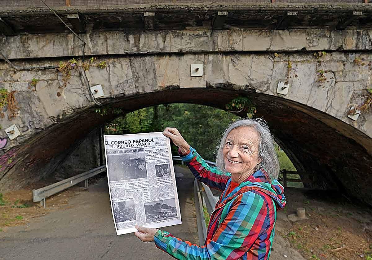 El Bilbao de diseño de hoy viene de otro donde se levantaban chabolas de la noche a la mañana, literalmente, para acoger a las personas que venían de la España más pobre con la promesa de una vida mejor. Como la familia de Flor Fernández, llegada de una aldea de Ourense para instalarse en Irusta, un núcleo cercano a La Peña. Allí vivieron hasta que los echaron para trasladarles a Otxarkoaga: en la portada de 1961 se ve el inicio de lo que el Ayuntamiento bautizó como Operación Derribo-Chabolas. «El día del traslado esperamos bajo este puente. Llovía y teníamos hambre, porque la cosa se alargaba», apunta. A sus 8 años, sintió pena por dejar su chabola, «donde fui feliz y nunca tuve la sensación de ser una pobrecita», recuerda esta mujer que, años después, se convirtió en fotógrafa de ‘La Gaceta’.